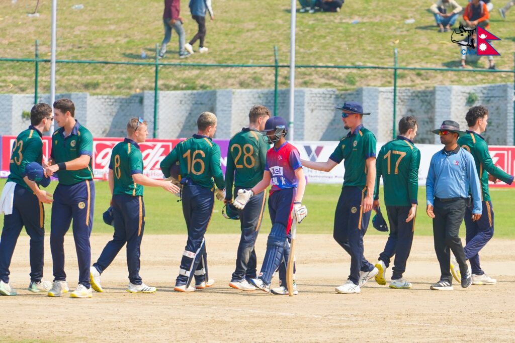 आयरल्यान्ड ’ए’ ले दिएको १ सय ७५ रनको लक्ष्य पछ्याएको नेपाल ’ए’ १६ ओभर ५ बलमा ६० रनमै अल आउट भयो । नेपालका भीम सार्कीले सबैभन्दा धेरै १७ रन बनाए । यस्तै कप्तान विनोद भण्डारीले १६ रन बनाए । अन्य ब्याटरले सम्झनलायक प्रदर्शन गरेनन् । बलिङतर्फ आयरल्यान्ड ’ए’ का म्याथ्यु हमफ्रेसले ६ विकेट लिए ।