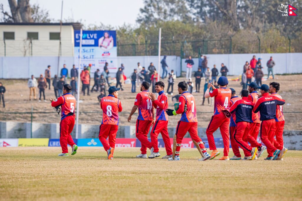 कीर्तिपुरमा भएको खेलमा कर्णालीले सशस्त्र प्रहरी बलको एपीएफ क्लबलाई २१ रनले हरायो । कर्णालीले दिएको २ सय ७ रनको लक्ष्य पछ्याएको एपीएफ ४४ ओभरमा १ सय ८५ रनमा अल आउट भयो । एपीएफका आसिफ शेखले शतक बनाए पनि जित पर्याप्त भएन । आसिफ १ सय १२ बलमा १ सय ८ रन बनाएर आउट भए । कर्णालीका प्रकाश जैशीले ४ विकेट लिए ।