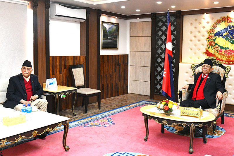 काठमाण्डौं । प्रधानमन्त्री पुष्पकमल दाहाल ‘प्रचण्ड’ र नेकपा (एमाले) का अध्यक्ष केपी शर्मा ओलीबीच भेटवार्ता भएको छ ।
